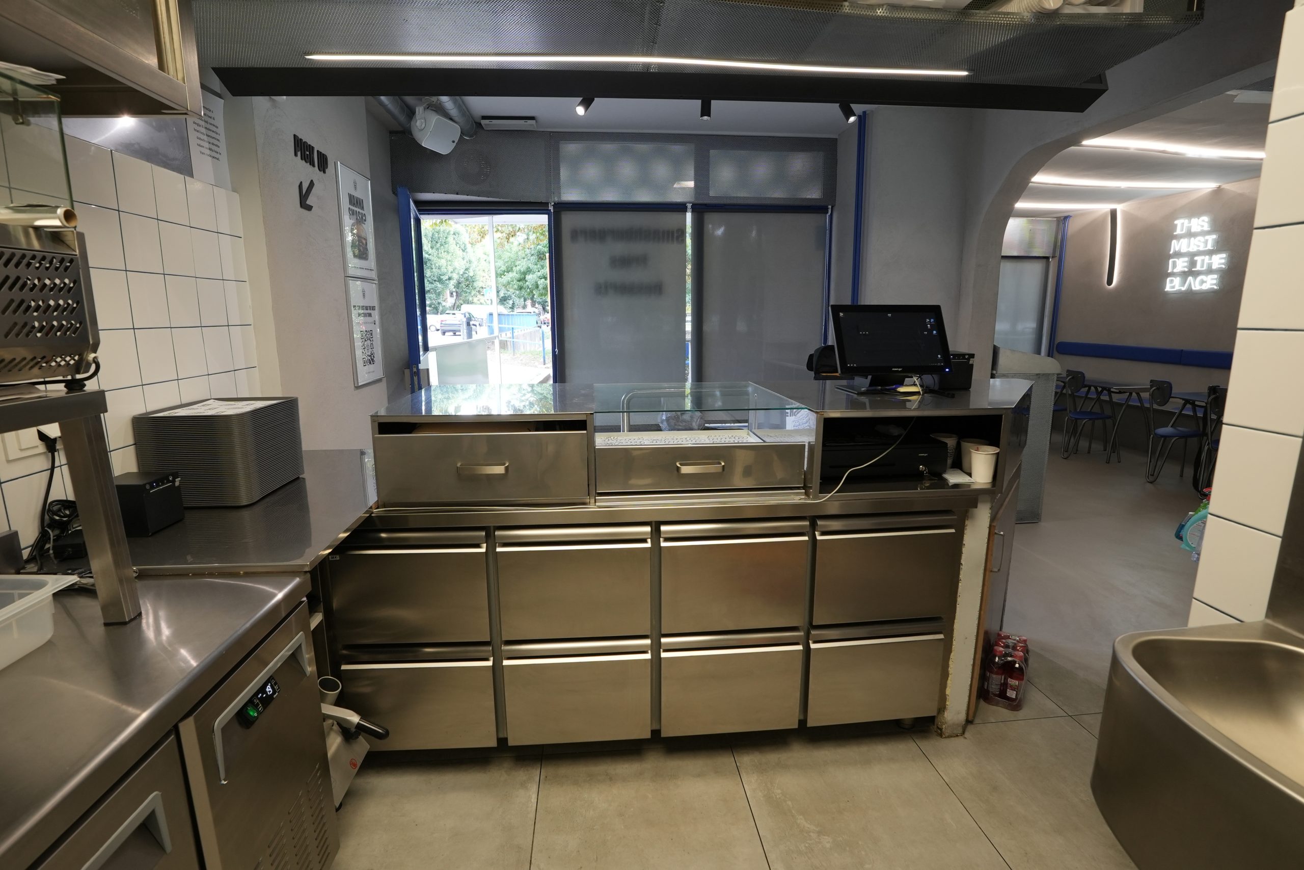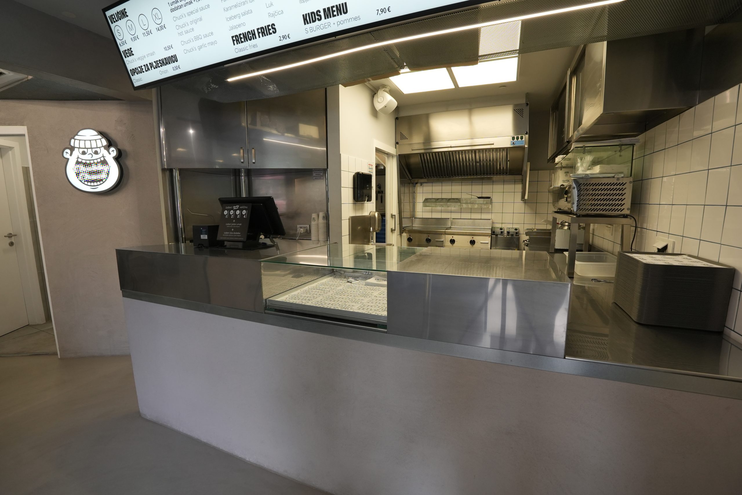 Konzultacija i savjetovanje za idejno rješenje, projektiranje, isporuka i montaža za kompletnu opremu za Fast Food (Zagreb), odabir adekvatne ugostiteljske opreme za ovu vrstu djelatnosti koja je svakim danom sve veći trend. U ovom vrlo reduciranom prostoru je smještena kompletna oprema za pripremu svih vrsta smash burgera, pljeskavica, pomfrija, raznih salata s mnogim dodacima, ugrađena je posebna napa za topli blok (roštilj i fritezu) koja ne zahtjeva vanjske kanale za usis i isis dimova i para koje se ispuštaju pečenjem i friganjem. Ovakva rješenja odnosno nape su adekvatne za sve Fast Food ugostiteljske objekte, restorane i konobe gdje se cijevi za ulazni zrak i izlazna cijev ili kanal za isis ne može montirati. To može biti stara gradska jezgra gdje vanjske cijevi nisu dozvoljene ili općenito radi buke, dima ili neugodnih mirisa koji mogu smetati susjedima.
